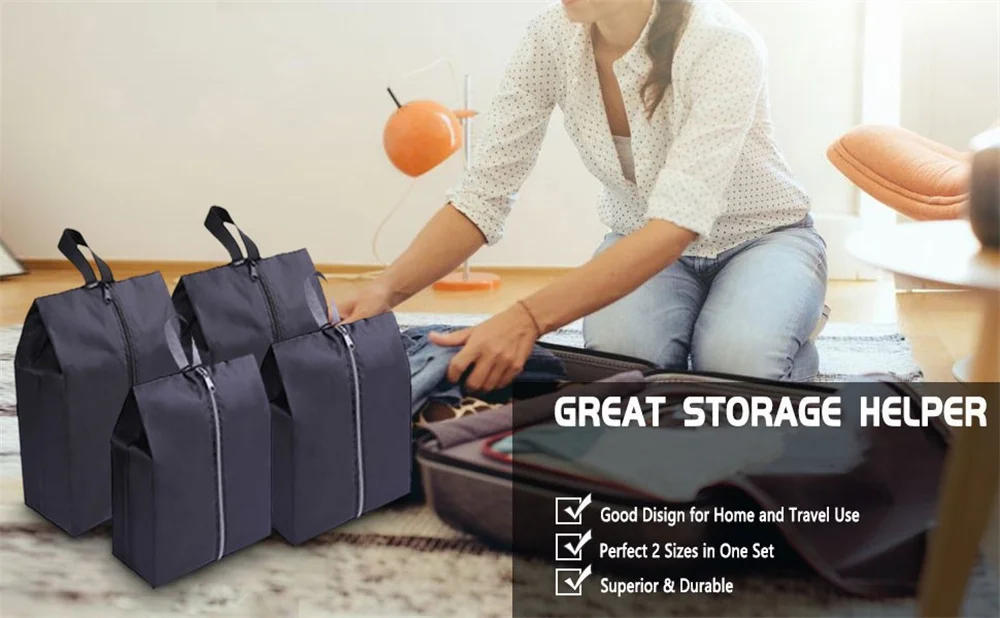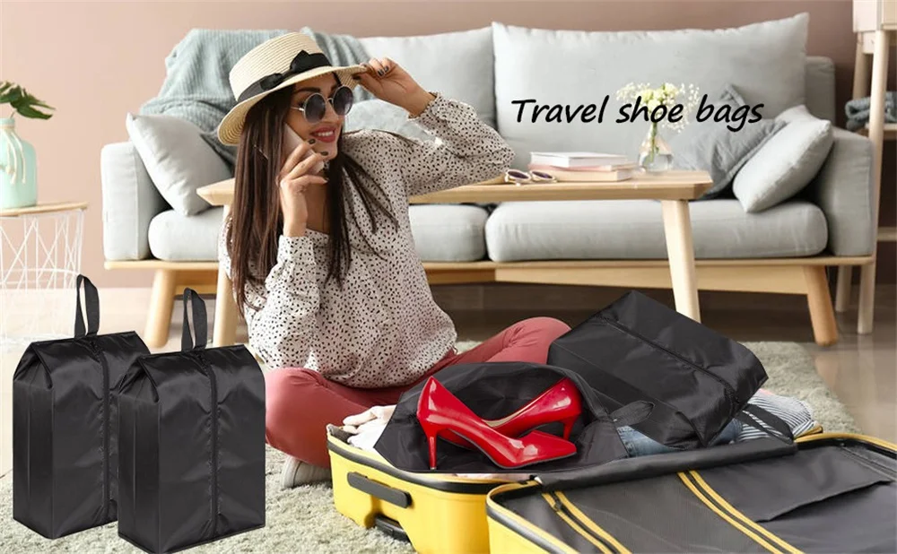 The lightweight shoe storage bag great for traveling and home use, keeps your shoes separate from clothes and protects it against scuffs and scraps.